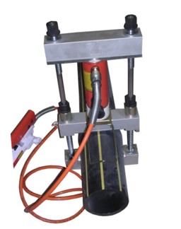 L’écrasement est réalisé grâce à une pompe hydraulique couplée à un vérin, qui permet la descente du mors supérieur (mobile) jusqu’en butée du mors inférieure (fixe), ou jusqu’aux butées étagées pour l’écrasement des tubes PE.