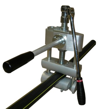 L’écrasement du tube par le mors mobile s’effectue par la rotation de la vis jusqu’à la butée correspondant au diamètre choisi.