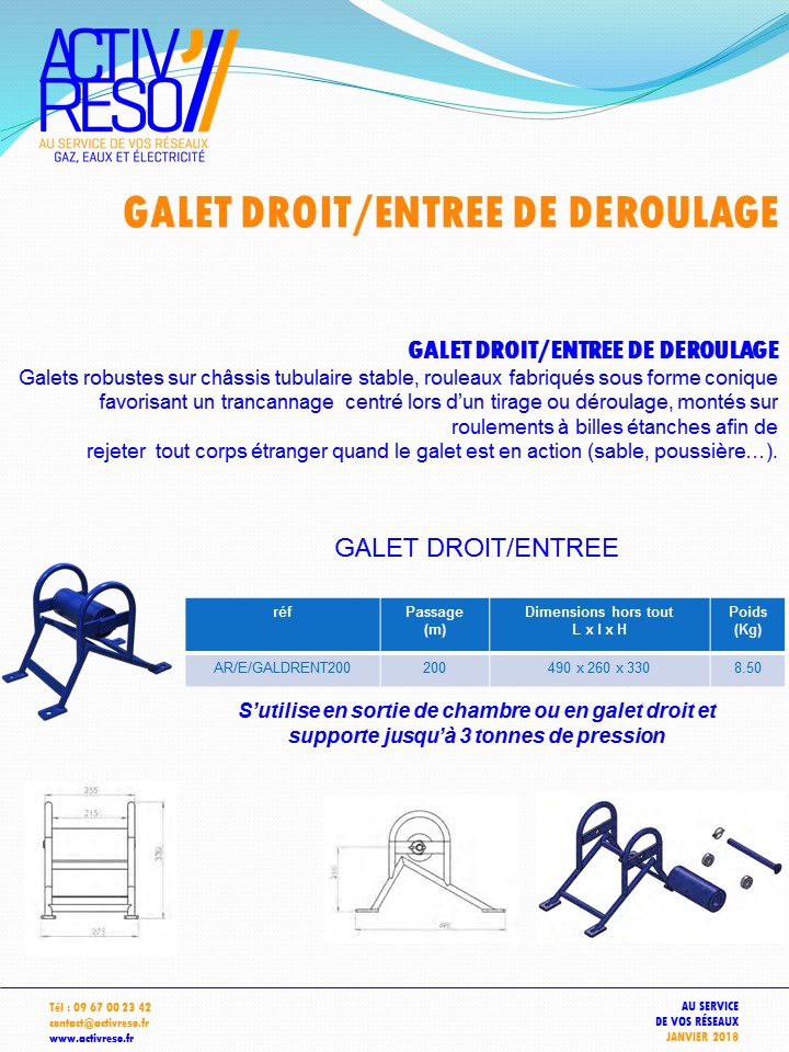 Galets robustes sur châssis tubulaire stable, rouleaux fabriqués sous forme conique favorisant un trancannage centré lors d’un tirage ou déroulage, montés sur roulements à billes étanches afin de rejeter tout corps étranger quand le galet est en action (sable, poussière…).