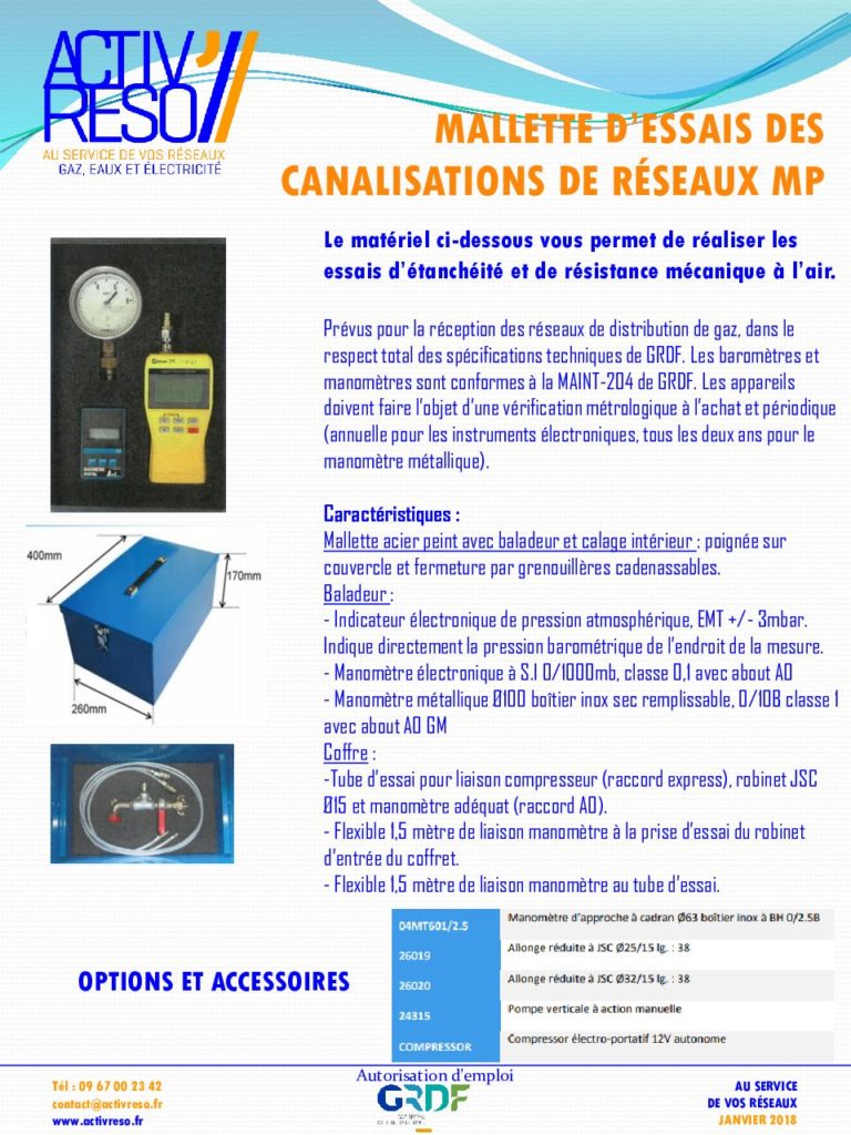 Prévus pour la réception des réseaux de distribution de gaz, dans le respect total des spécifications techniques de GRDF. Les baromètres et manomètres sont conformes à la MAINT-204 de GRDF. Les appareils doivent faire l’objet d’une vérification métrologique à l’achat et périodique (annuelle pour les instruments électroniques, tous les deux ans pour le manomètre métallique).