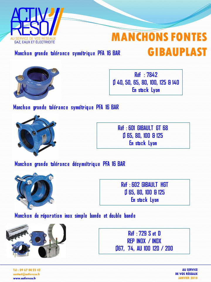 Manchon grande tolérance désymétrique PFA 16 BAR : Ø 65, 80, 100 & 125