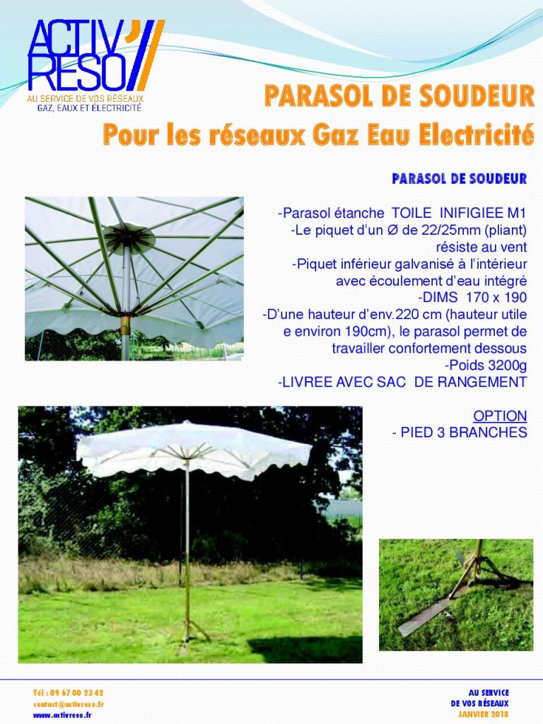 -D’une hauteur d’env.220 cm (hauteur utile e environ 190cm), le parasol permet de travailler confortement dessous