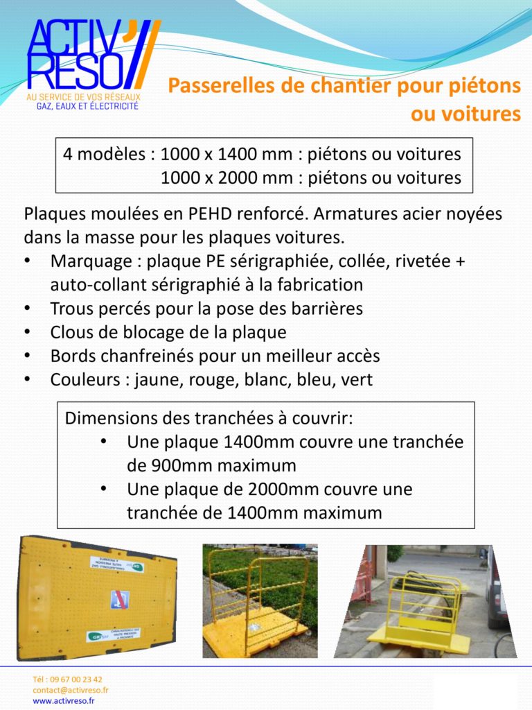 Nos passerelles de chantier pour piéton sont des plaques couvre-tranchées moulées en PEHD renforcé.