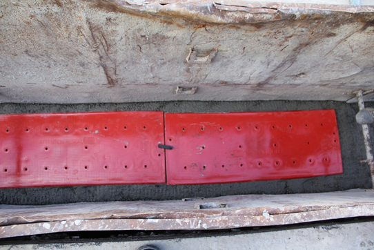 Plaques réalisées en PEHD injecté, résistant à l’agression d’une pelle mécanique de 32 tonnes.