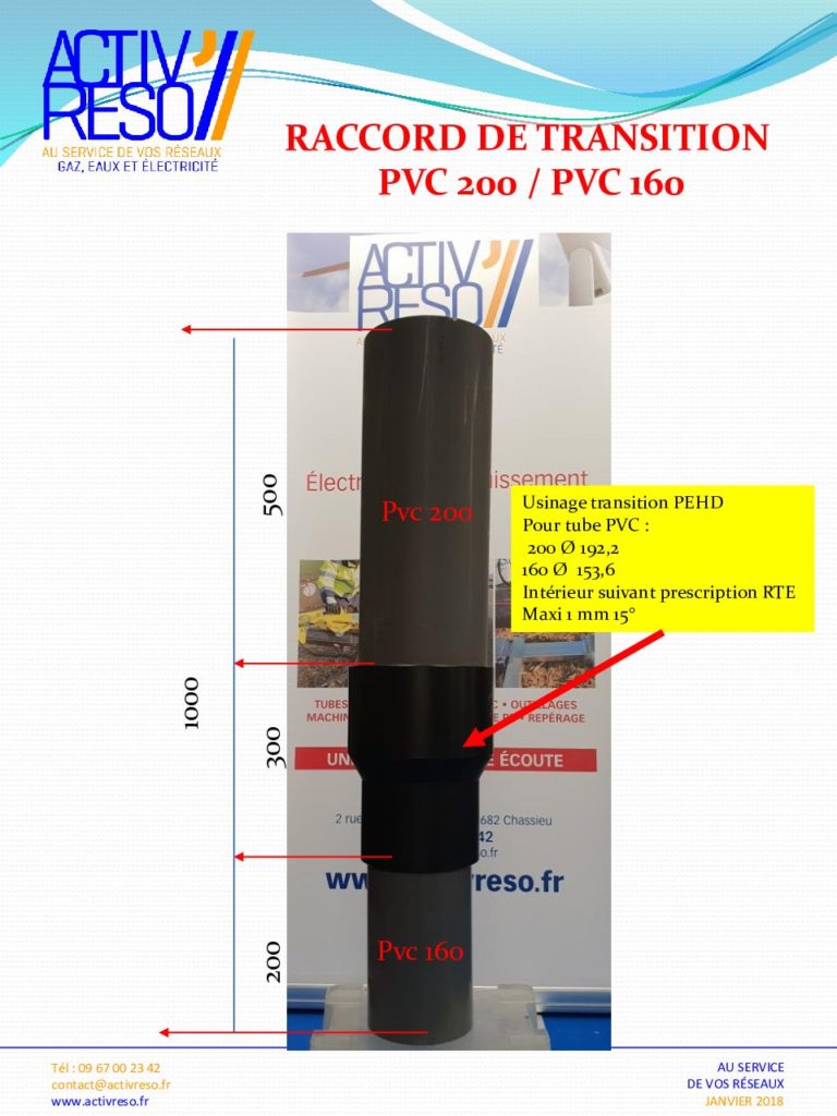 Ce raccord usiné en PEHD permet d’effectuer la transition entre 2 tubes PVC de dimensions: